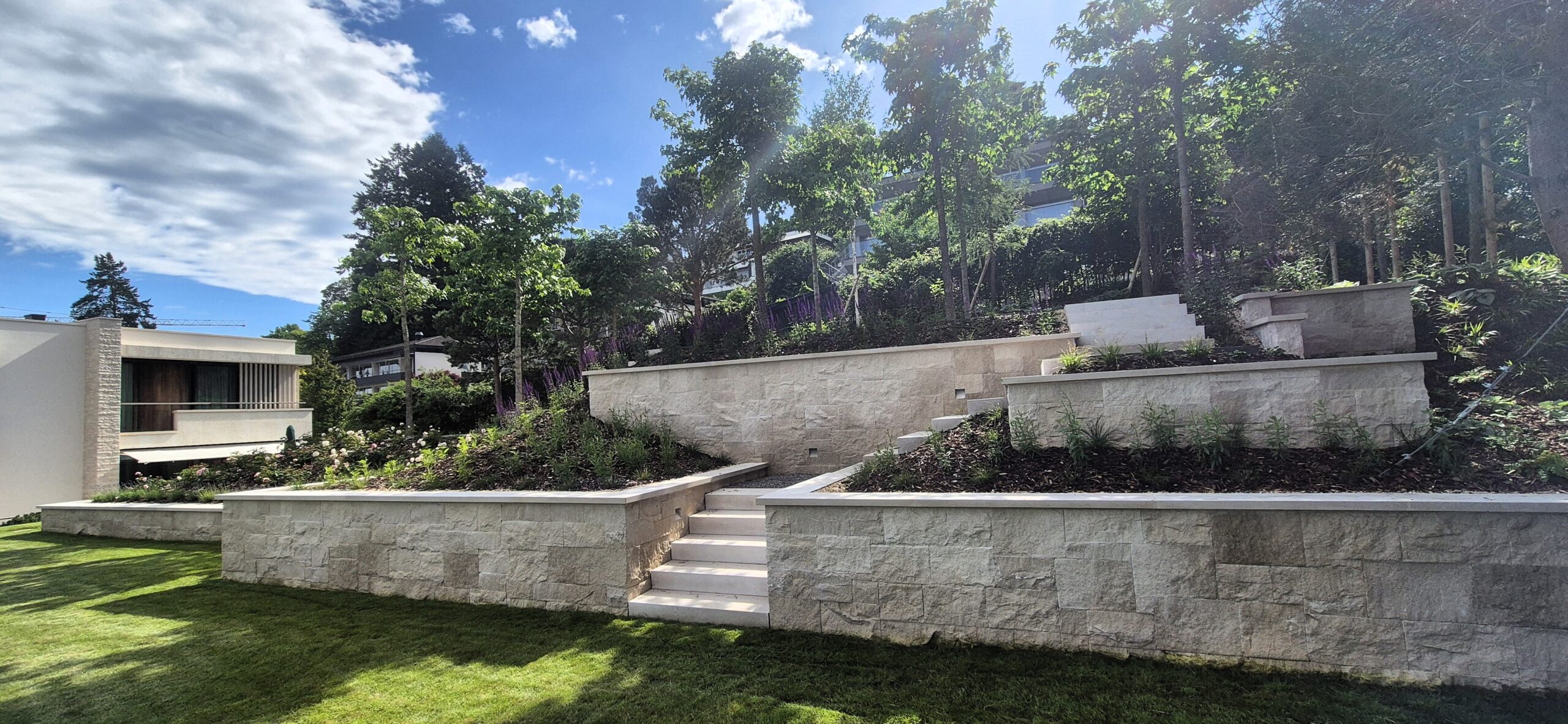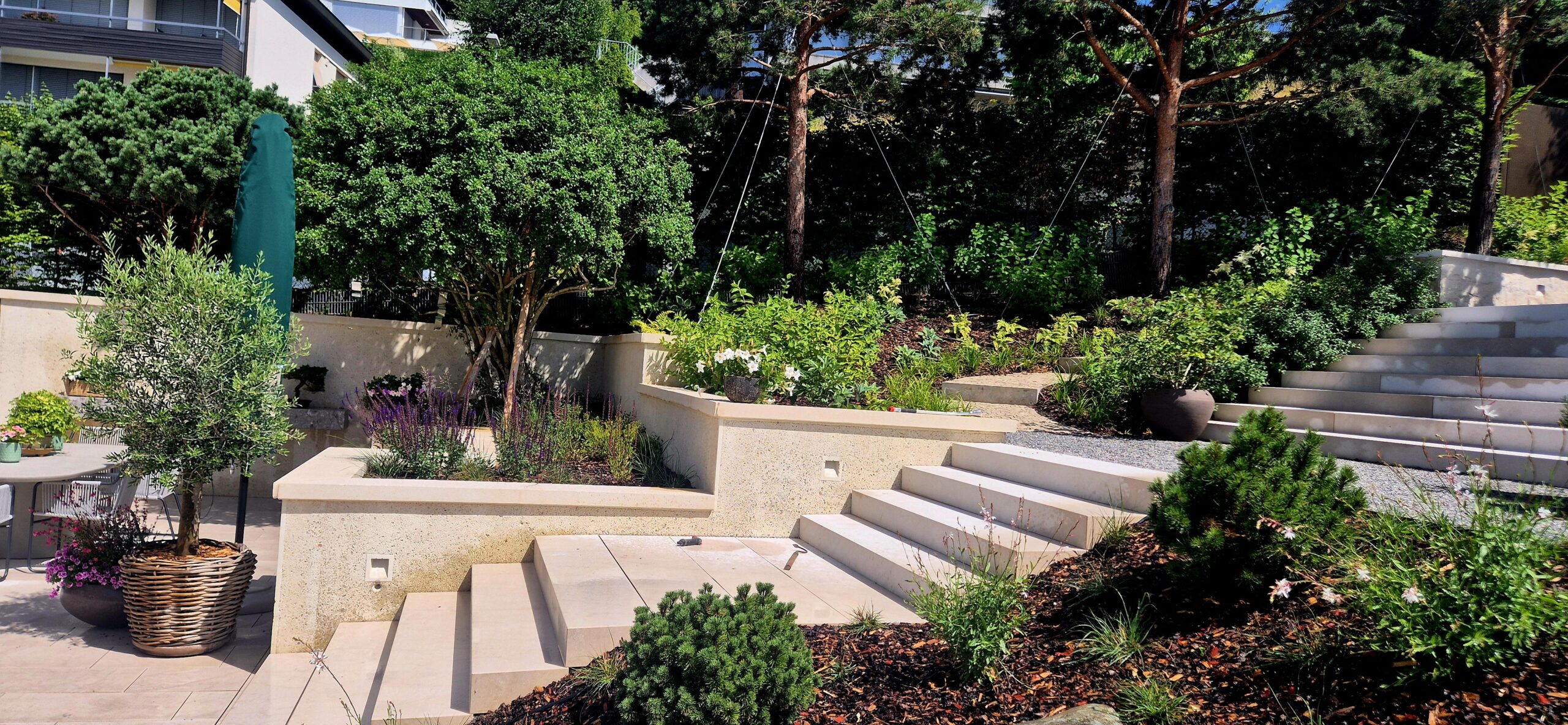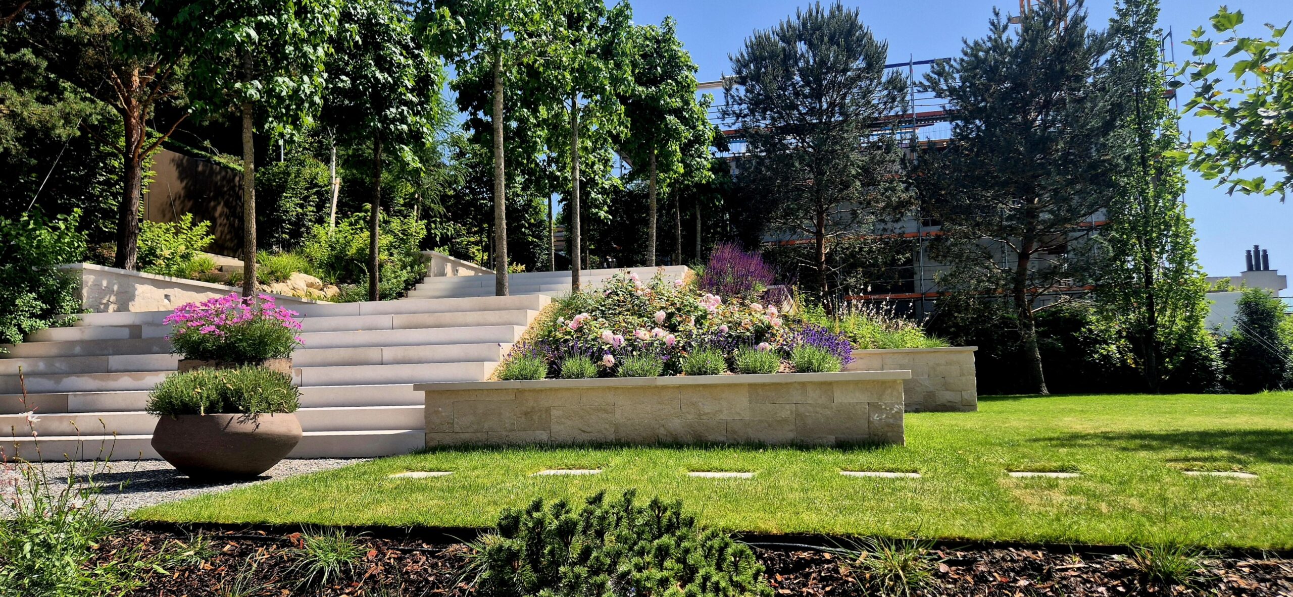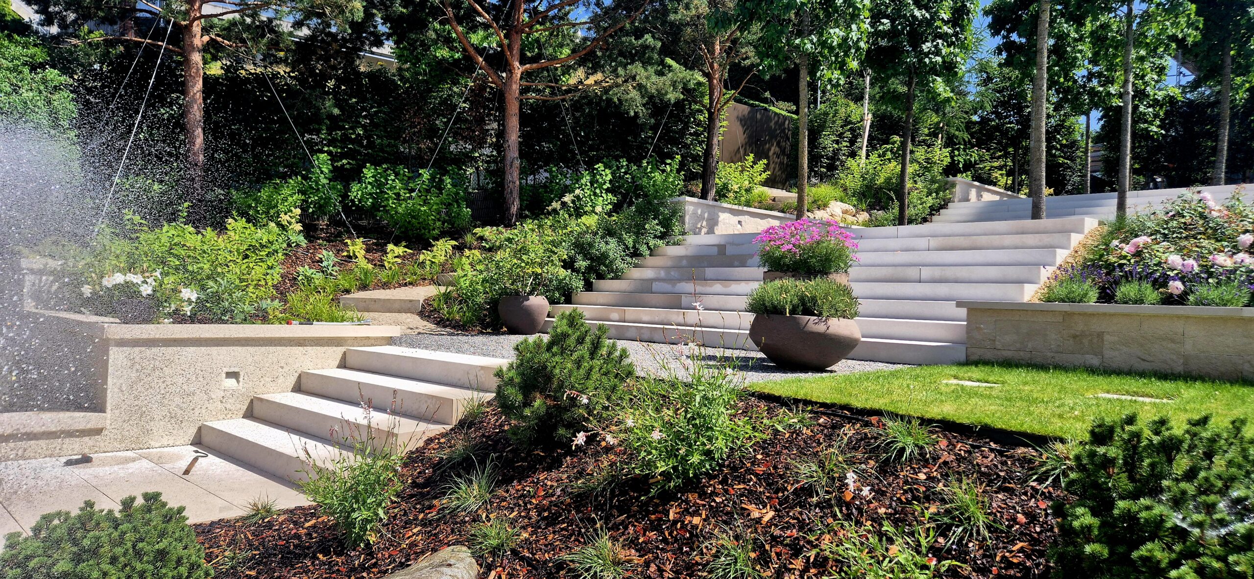 Oprócz osobistego wykonawstwa i nadzorów nad pracami w Polsce, kilka miesięcy spędziłam na praktycznej nauce zawodu za granicą. Dzięki udziałowi przy budowie prestiżowego ogrodu w Szwajcarii i pobytowi w tym edenie dla ogrodników mogłam podpatrzeć jak robią to najlepsi.