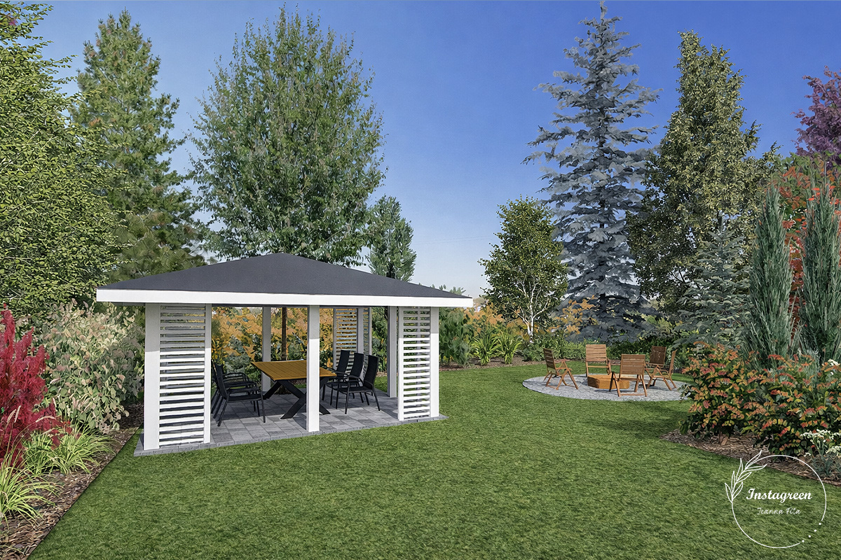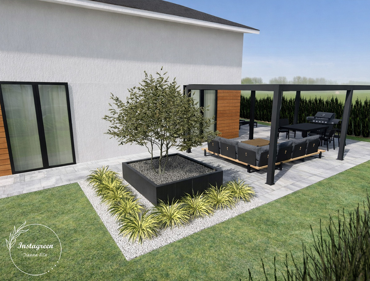 ✓ koncepcja pergoli z zadaszeniem