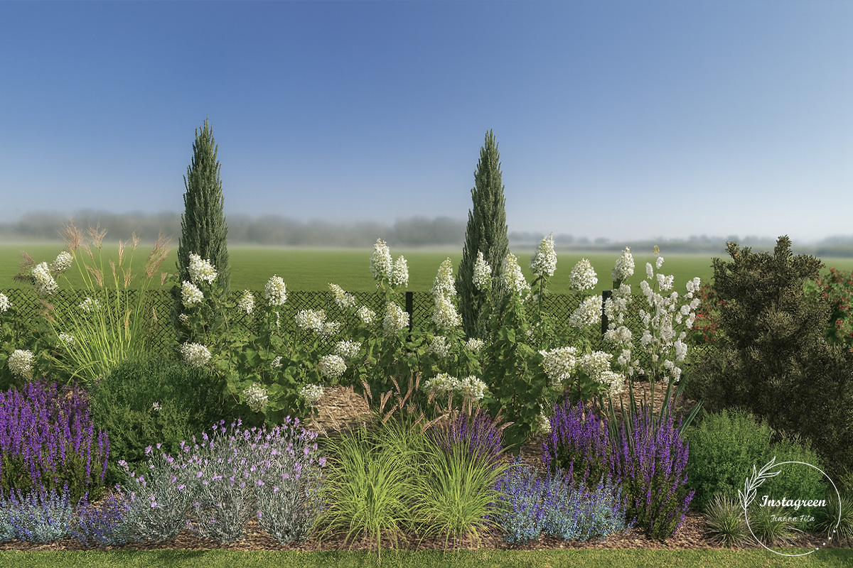 ✓ preferowana kolorystyka roślinności: fiolet róż biel